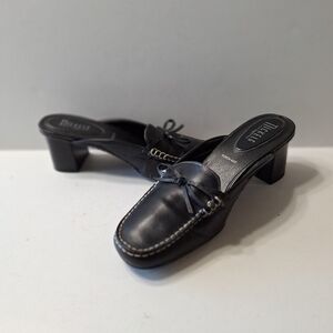 Nickles Soft Black Leather Hobson Preppy Academia Slip On Heeled Mules Size 9M