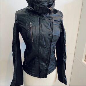 Nickolas K high collar genuine leather Moto jacket in BLACK NEW