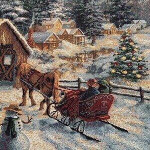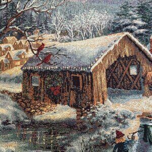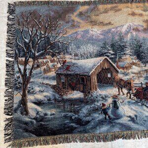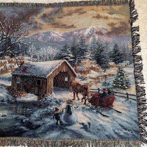 Nicky Boehme Tapestry Throw Blanket Christmas Winter Scene Traditional Nostalgic