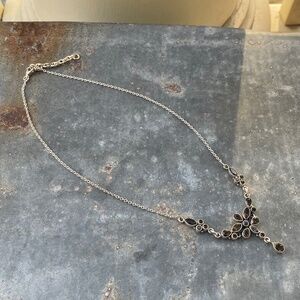 Nicky Butler 925 Sterling Silver Necklace w/ brown gemstones in flower design