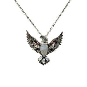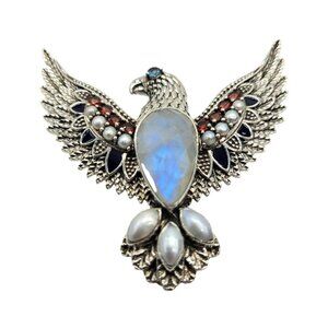 Nicky Butler RARE Gems & Moonstone Eagle Brooch Pendant with Chain .925 Silver