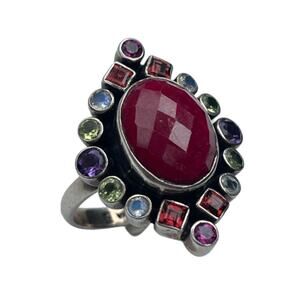 Nicky Butler Signed Ruby Multi Gemstone Ring - Sterling Silver - Size 12