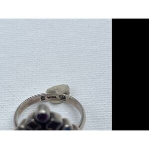 This size 12 ring from Nicky Butler truly shines, with a striking ruby, twinkling moonstone, lively peridot, royal amethyst, and fiery garnet set in sterling silver. Its weight is a solid 12 grams.