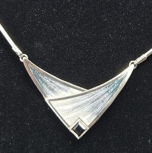 Nicky Butler Sterling Silver Necklace Trianglar Blue White Pendant Black Onyx