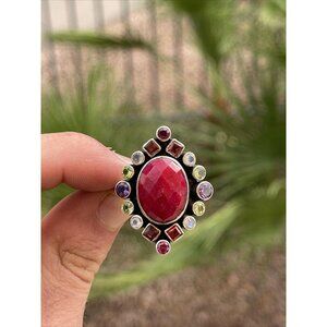 HUGE! Nicky Butler Sterling Silver Ring Size 12 Multi Moonstone Amethyst Ruby