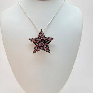 Nicky Butler Vintage Garnet gemstone Star Pendant Brooch .925 Sterling Silver