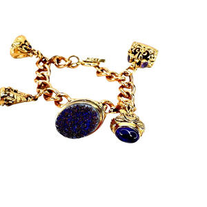 Nicky Butler Vintage Gold Tone Chainlink Charm Bracelet Gem Stone Druzy Amethyst