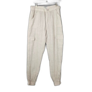 Nicloe Miller Linen Cargo Joggers Size Large European Flax Pull On Pants