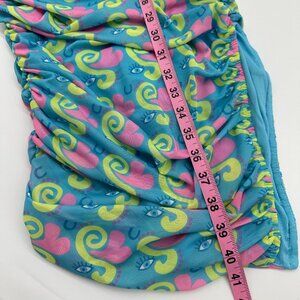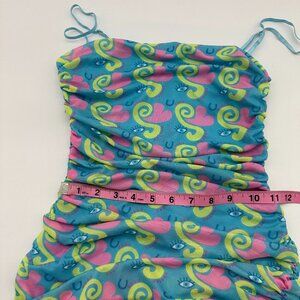 "The perfect mesh dress for going out, European vacations, girls brunch, sunset dinners, events etc... The Portofino print is designed in house at NICNAK. Made from a premium silky mesh material that is made to feel comfortable and suck you in. The ruching is the perfect texture to create a dreamy hourglass figure. This dress features adjustable straps for an adjustable fit, a no show zipper, and a side slit to make walking easy. With inclusive sizing ranging from extra small to extra large, Portofino flatters an array of body types."
