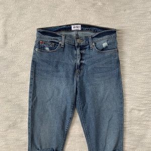 Great pair of jeans featuring distressed slits at the knee, step up hem with back detail, slant hip pockets, and back patch pockets with Hudson's signature design. Style with your favorite booties! Please see my seller profile if you'd like my measurements for reference. Shown in pics styled with Urban Outfitters top (to be listed in my closet soon!)