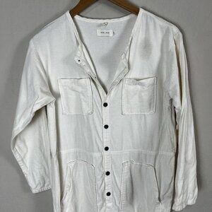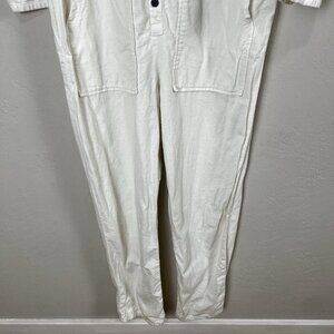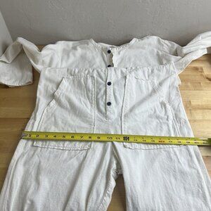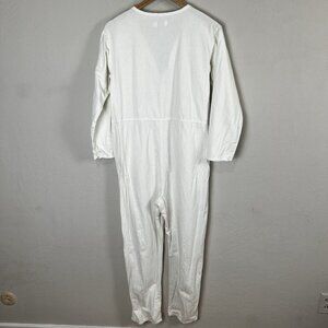 Nico Nico White Button Down Utility Flannel Long Sleeve Jumpsuit Size Medium