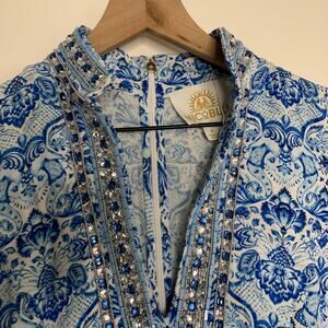 NicoBlue Shalimar Long Tunic Dress with Sapphire Jewel Embellishment Women New