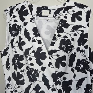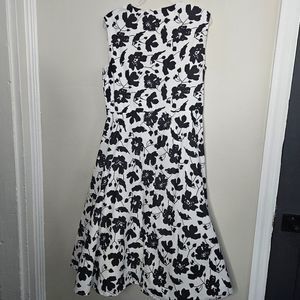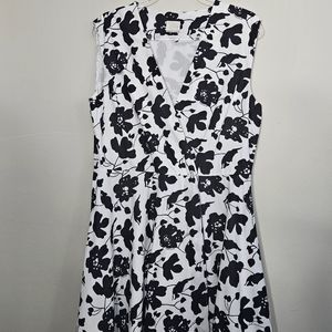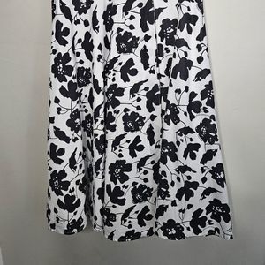 Nicobar White Black Floral Midi Sleeveless V-neck Full Skirt Dress Size …