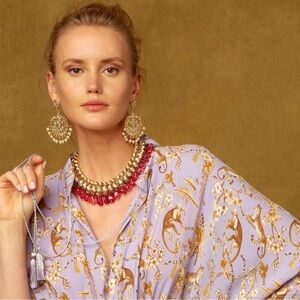 Nicoblu Julia Kaftan in Whimsical Jungle Toile in Saffron on Lavender