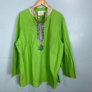 Nicoblu Madison Tunic in Lime Green Embellished in Gold & Semiprecious Stones 4X