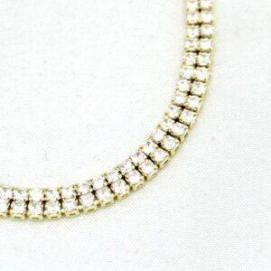 Nicola Parisi 14kt gold plated cubic zirconia slider bracelet. Fits from approx. 6" to 9". Double row of cubic zironias. Slinky and sparkly bracelet. The box does show some marks from tags that were removed. The bracelet is new but was removed from the box to photograph. All photos are of the actual bracelet.