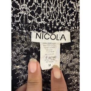 Nicola Shirt Womens Medium Black White Crochet Lace Button Up Collared Top USA