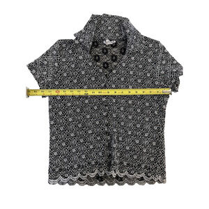 Nicola Shirt Womens Medium Black White Crochet Lace Button Up Collared Top