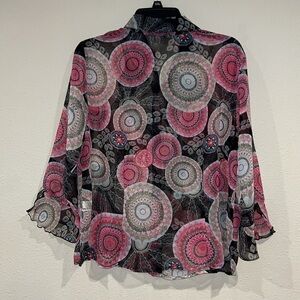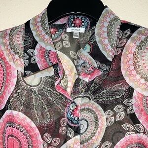 Nicola Vintage Sheer Button Up Blouse size Large contemporary abstract Boho