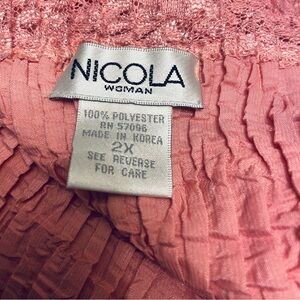 Nicola Women’s Plus Size 2x Pink Lace Crinkle Sleeveless Blouse. In good condition. Lace at the top front and back, the rest is a crinkle shiny style.