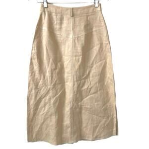 Nicolas Linen Skirt Women's Size 4 Beige Tan Midi 100% Linen Quiet Luxury