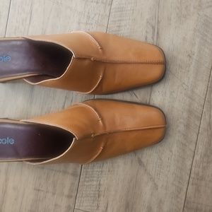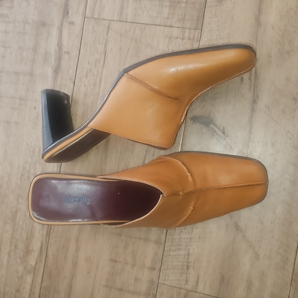 Nicole size 9.5 tan leather 3 inch heel mules with fashion slit in top ask questions make offer make in Brazil