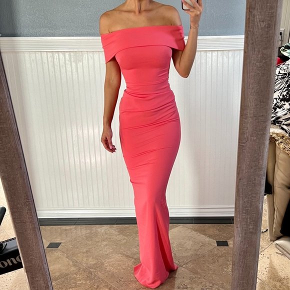 Elegant off-shoulder design. Fitted silhouette. Perfect for special occasions.