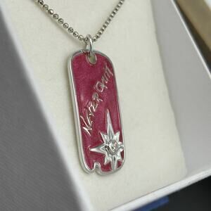 Nicole Barr 925 Sterling Silver Never Quit Enamel Dog Tag Pendant Necklace NEW