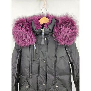 Nicole Benisti Chelsea Down Parka Size M Black Purple Rabbit Fox Fur Jacket Coat
