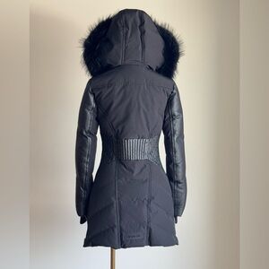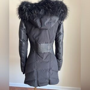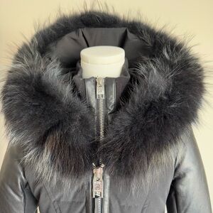 NICOLE BENISTI Series Courcheval Leather & Raccoon Fur Trim Down Jacket Size XS Black, Black leather trims, chrome hardware BRAND NEW WITH TAGs!