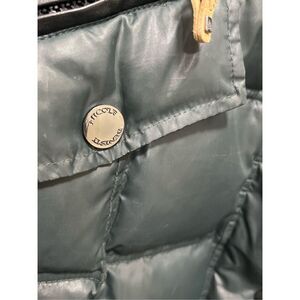Gorgeous down jacket with faux fur trimmed inner hood and real fox fur around the hood. Chic jacket - no more black down jackets! One snap is missing. See pix.