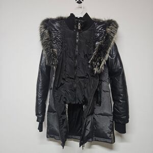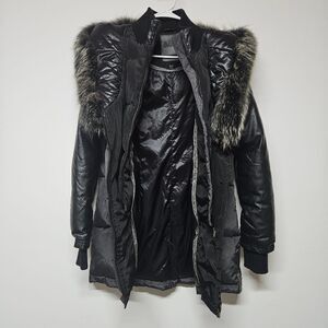 Faux leather, real fur (Chinese raccoon) duck down and duck feathers