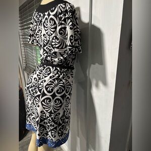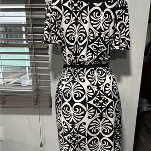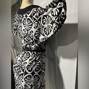 Elegant Nicole dress with a striking black and white design. Perfect for any occasion.