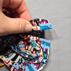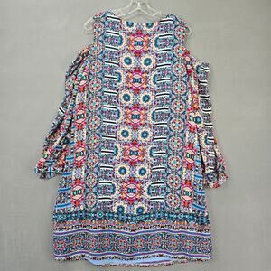 Nicole by Nicole Miller Blue Multicolor Geometric Floral Dress Classic Midi Longer 3/4 Cold Shoulder Sleeve Shift V-Neck Lined Women's Size 16 Lightweight Pullover