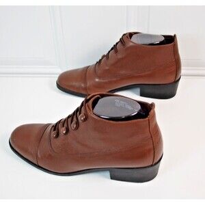 Nicole Bonsai Brown Leather Ankle Boots Button & Loop Granny Boots 8.5M US