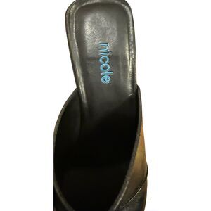 Nicole Brakes Black Leather Heeled Mules in Size 6.5