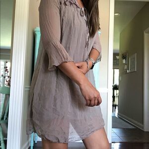 Nicole Brown 100% Silk Mini Dress Lace Italy Lightweight Women Size Small