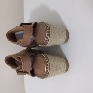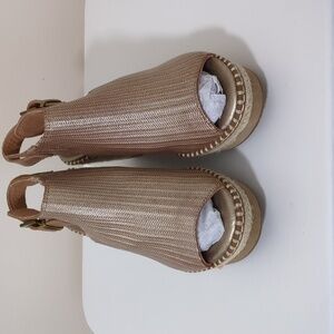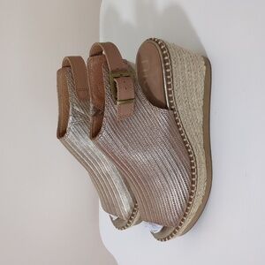 Nicole Danette gold metallic espadrilles wedge sandals. Peep toe and ankle strap. 3.5-in heel and 1.5-in wedge in front. Would look great with a skirt, dress or a pair of jeans! Size 8.5. NWOT
