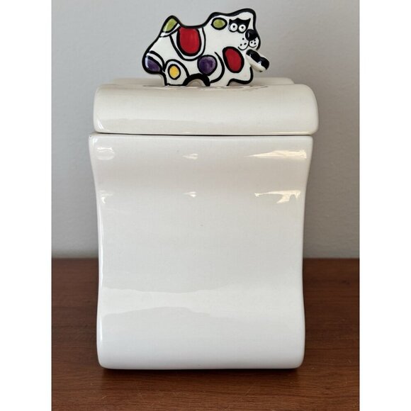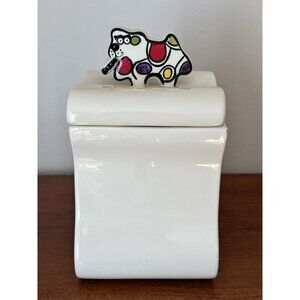 Nicole Engblom Hand Painted Ceramic Dog Biscuit Cookie Canister Jar 8"