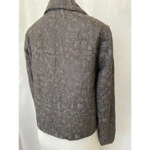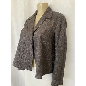 Nicole Farhi Jacket Blazer Taupe Brown Open Front Embroidered Sequin 100…