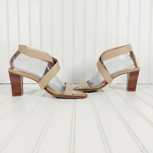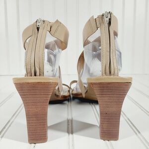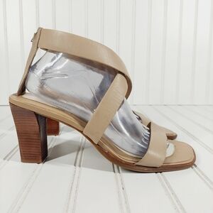 Nicole Fracture Tan Leather Block Wood Heel Back Zipper Strappy Sandals Y2k A674
