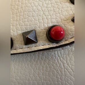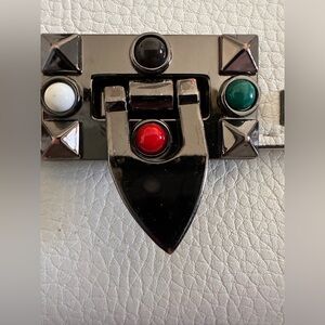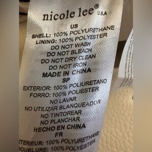 Nicole Lee Multicolor Studded White Crossbody Bag. Faux leather. Chic and stylish, this studded white crossbody bag is perfect for any occasion. Its sleek design and vibrant stud accents make it a standout accessory.