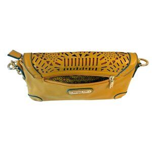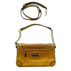 Nicole Lee Shoulder Handbag Purse Mustard Yellow Cut Out Rinestones Faux Leather