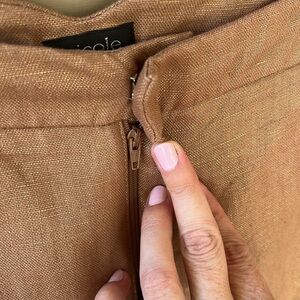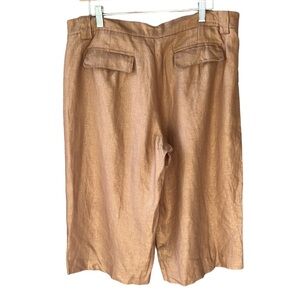 Nicole Miller 100% Linen Camel Color Metallic Sheen Bermuda Slack Shorts Sz 14