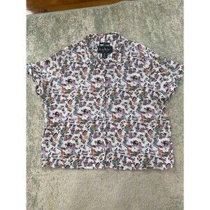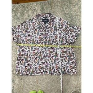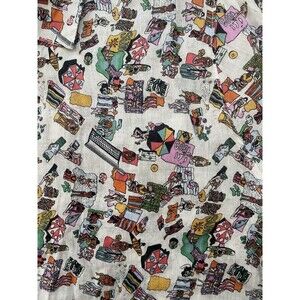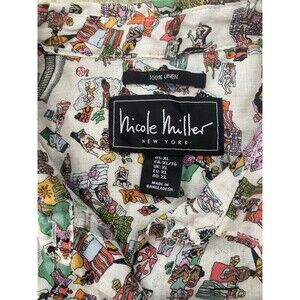 Nicole Miller 100% Linen Top Womens Sz XL Retro Beach Print Button Up Multicolor
