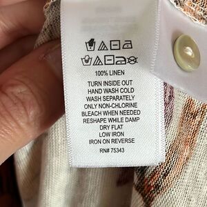 This top is made by Nicole Miller. It’s a cap sleeve, 100% linen, floral print with buttons down the back. Size medium and in very nice pre owned condition. Smoke and pet free home.