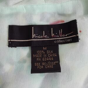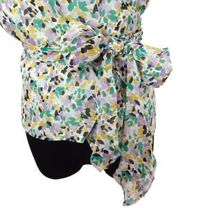 Nicole Miller 100% Silk Wrap Blouse V Neck Sleeveless Mint Floral Womens M