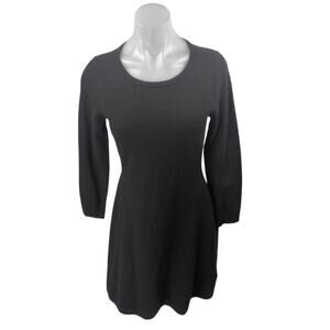 Nicole Miller 100% Wool Black Knit Long Sleeve Knee Length Sweater Dress Size S