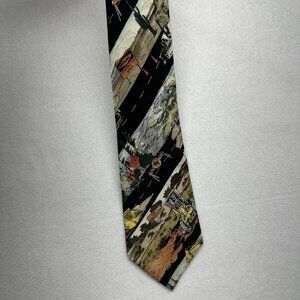 Nicole Miller 1993 Vintage Silk Tie Road Construction Bulldozer Theme Novelty