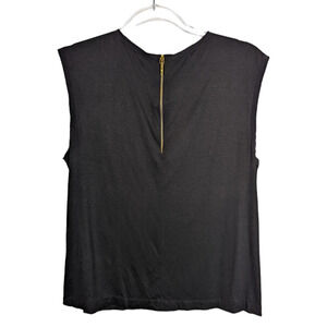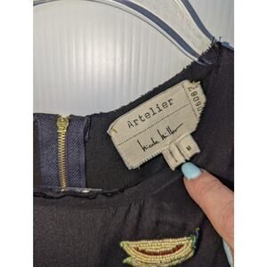 Nicole Miller Artelier Black Sleeveless Silk Top Beaded Sequins Banana Cherry